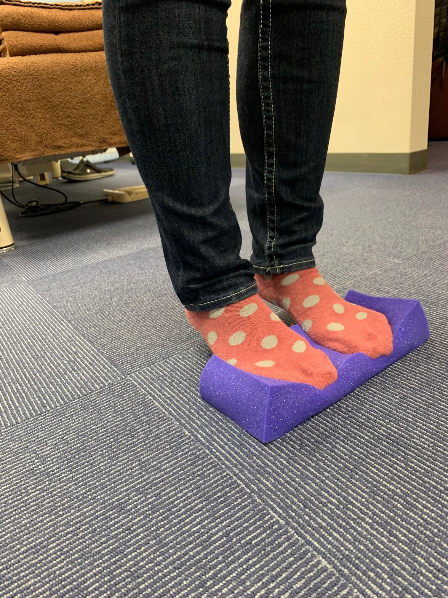ブロックの上に2分程度乗りながら、簡単なエクササイズをするだけで、重心の位置が修正され、バランスの良い状態にしてくれます。